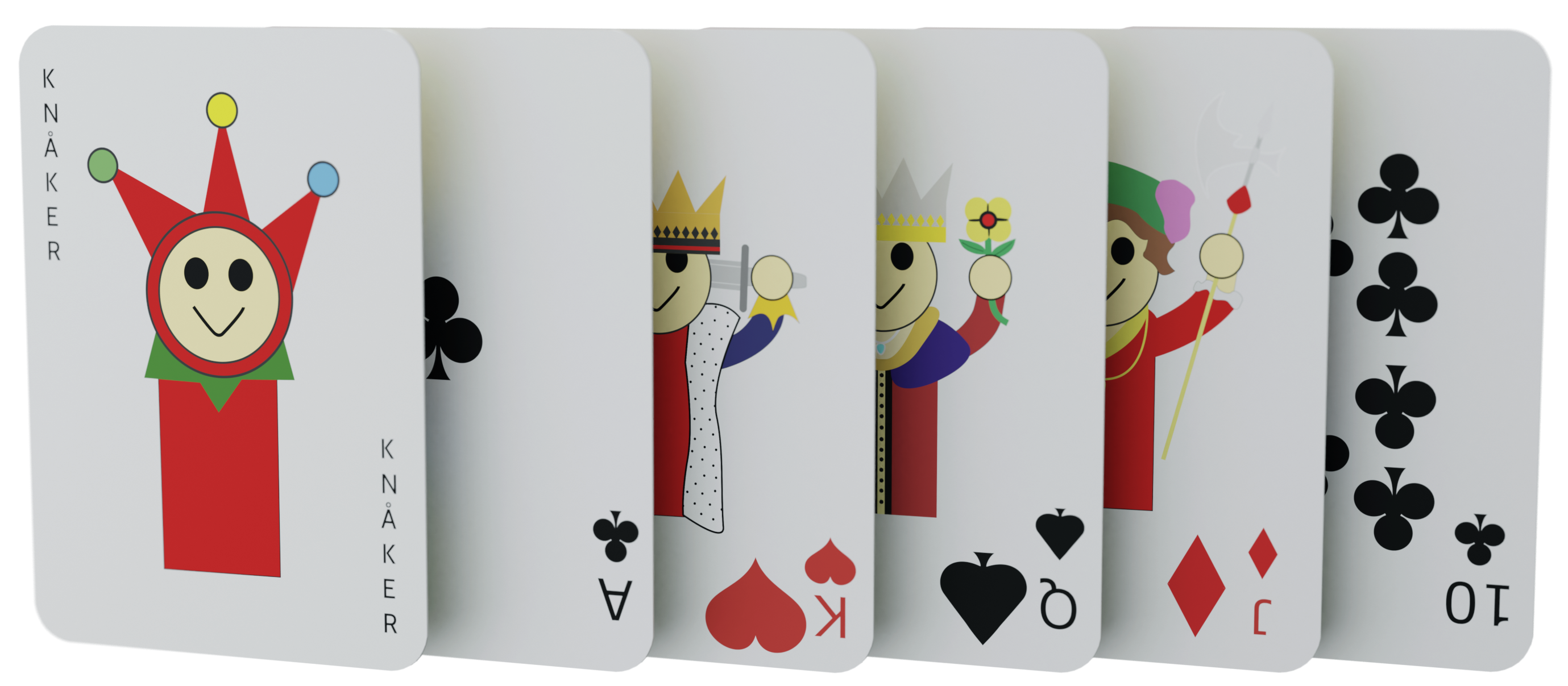 This is a deck of cards that I and Samuel designed for my upcoming game Knåker Online, where you can play Knåker, but online! The first picture is of a few different cards. The second picture is of the two current back designs. Decks of these cards will be purchaseable whenever I manage to fix my printer, so look forward to that!