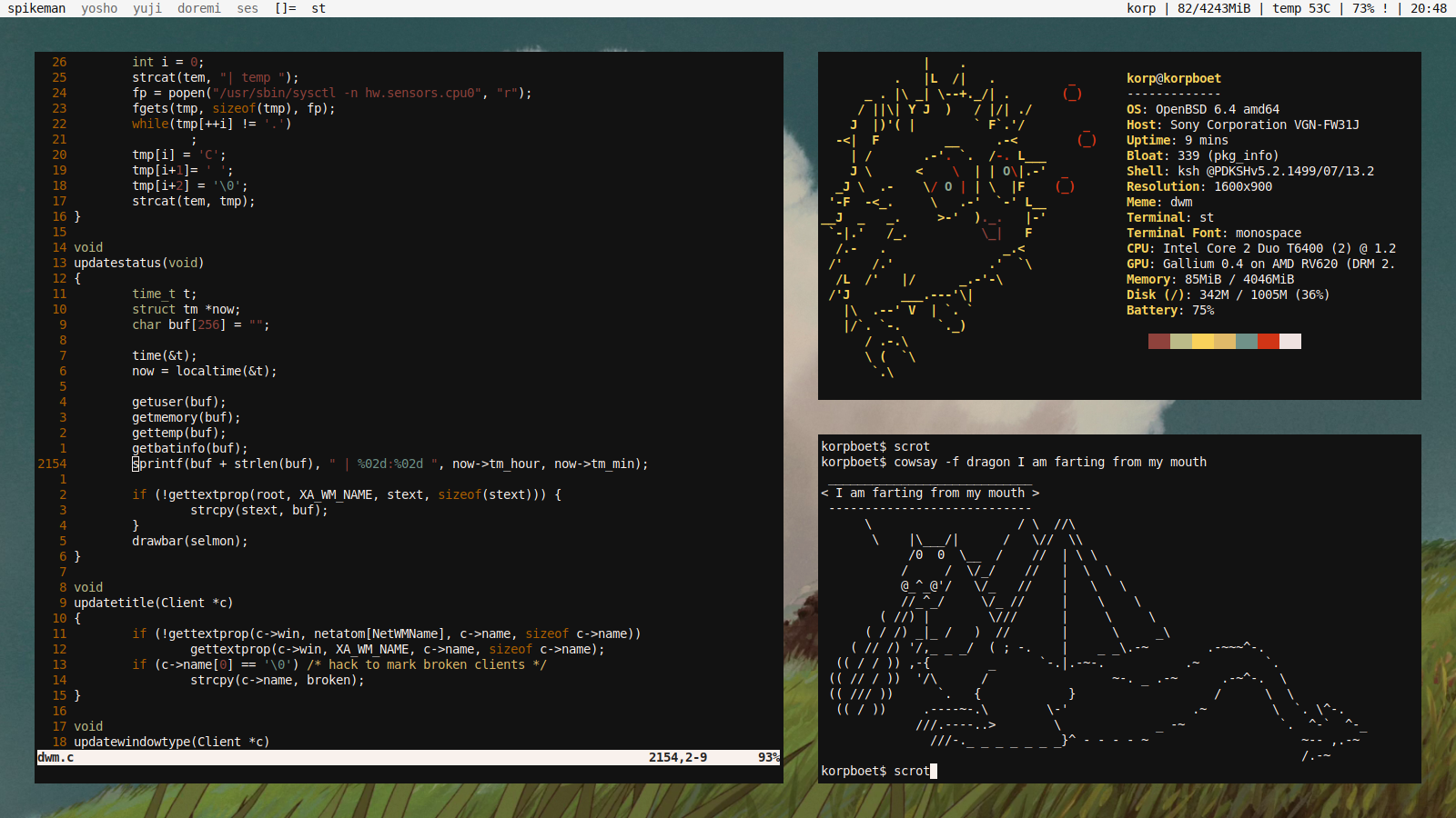 Here is a screenshot from a previous rice I made on the computer this website is hosted on. I am now trying Linux instead and haven't gotten very far into ricing my system.